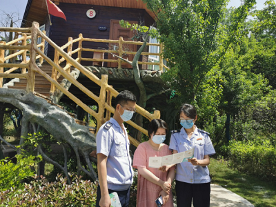 (圖為南京稅務(wù)干部在巴布洛生態(tài)谷向游客解讀最新的稅費優(yōu)惠政策)